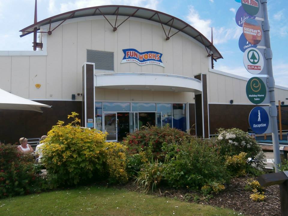 On site you will find the Funworks Entertainment centre which includes amusements, swimming pool (indoor, outdoor, lazy river & flume) and clubhouse. Next to Funworks you will find Slim Chickens & opposite this you will find the Surfbay Restaurant with terrace and bar. Following round from Surfbay is Reception which is opposite the all weather sports court. Next to this is Nisa which stocks Co-op products along with gifts, toys and beach goods too. Along from this is the Hub for various activities. On the opposite side of the pedestrian area you will find a cash machine next to Adventure Golf (opposite the Caravan Sales Office & showground) as well as Papa Johns (Pizza), Cooks Fish and Chip Takeaway & Coast Bar along with an outdoor seating area.